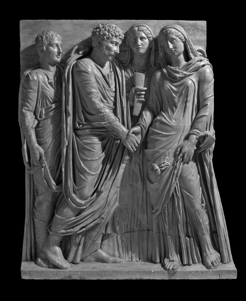 2) La cérémonie de mariage est officiée par les mariés eux-mêmes, en présence de leur famille et proches. Il s’agit pour les époux de se jurer fidélité et assistance, et d’ériger leur foyer devant les leurs. Le symbolisme est celui de la coupe et du banquet : le couple montre qu’ils mêlent leur sang et convient leurs proches à leur premier repas de famille.